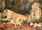 left to right: * Leopard and Rock Elephant * Leopard with Buck * Lion